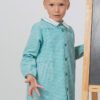 Per rendere gioiosa e allegra la scuola abbiamo creato un modello che gioca con i quadretti medi Vischy, piccoli e grandi tutti verde smeraldo e bianco, il colletto con ricamo in tinta, ovviamente il cotone e’ grezzo, fibra naturale 100% cotone