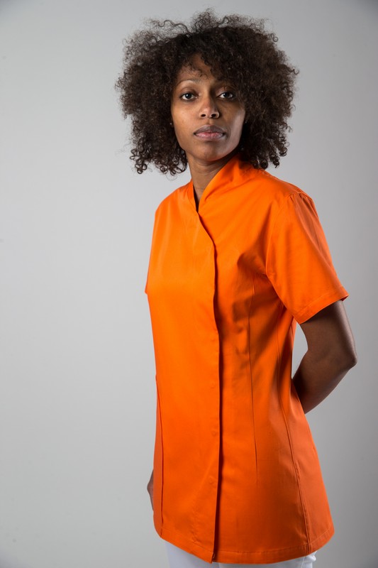 Per chi ama lo stile minimalista chic, la casacca asimmetrica con collo alla coreana baciato, allacciatura nascosta con bottoni a pressione, manica corta, con tasca nel fianco a scomparsa.