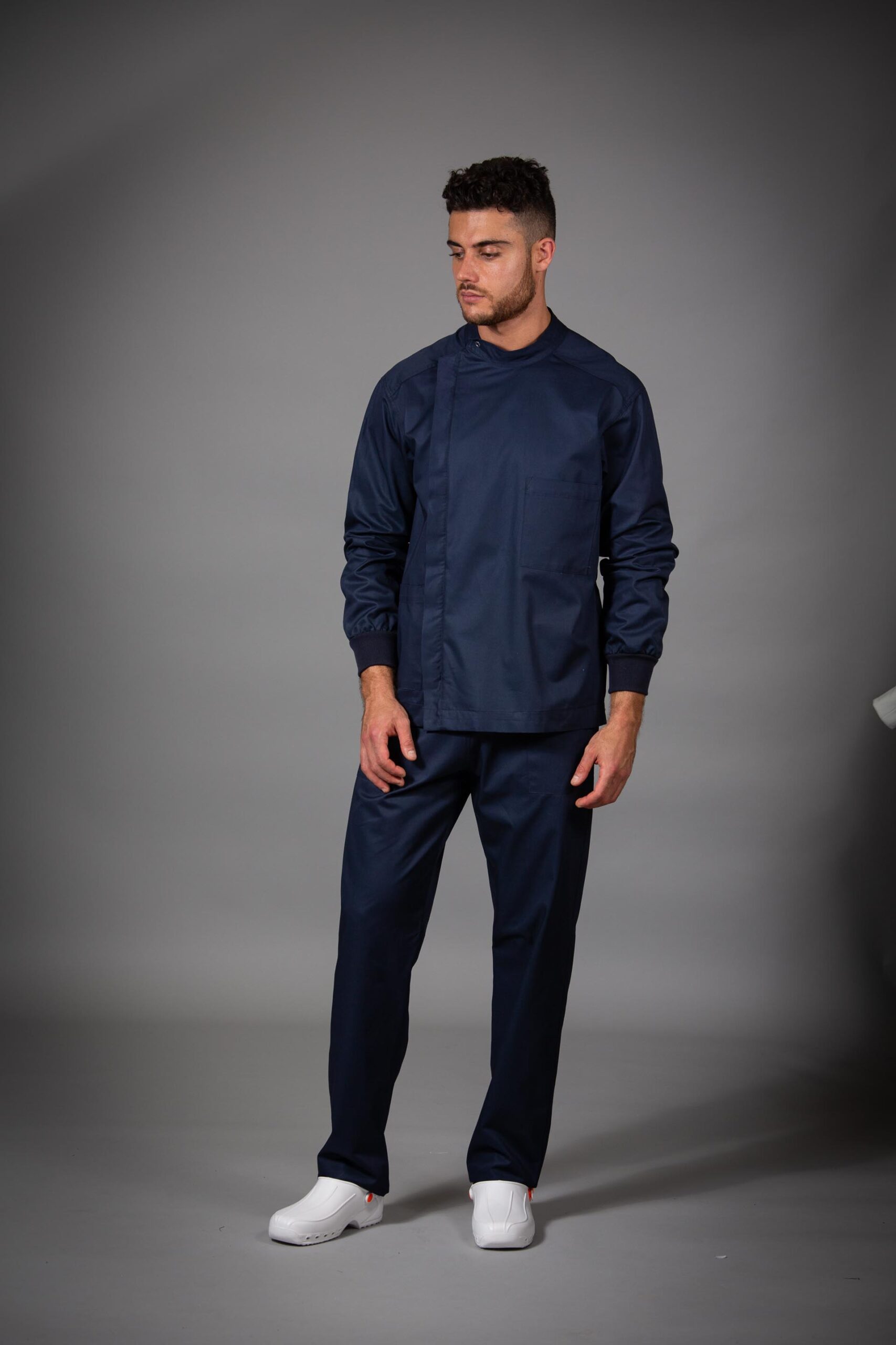 Casacca morbida asimmetrica, allacciatura con zip e bottoni a pressione con manica lunga, polso in maglina, tasca e taschino. Cotone 100% Zephir.