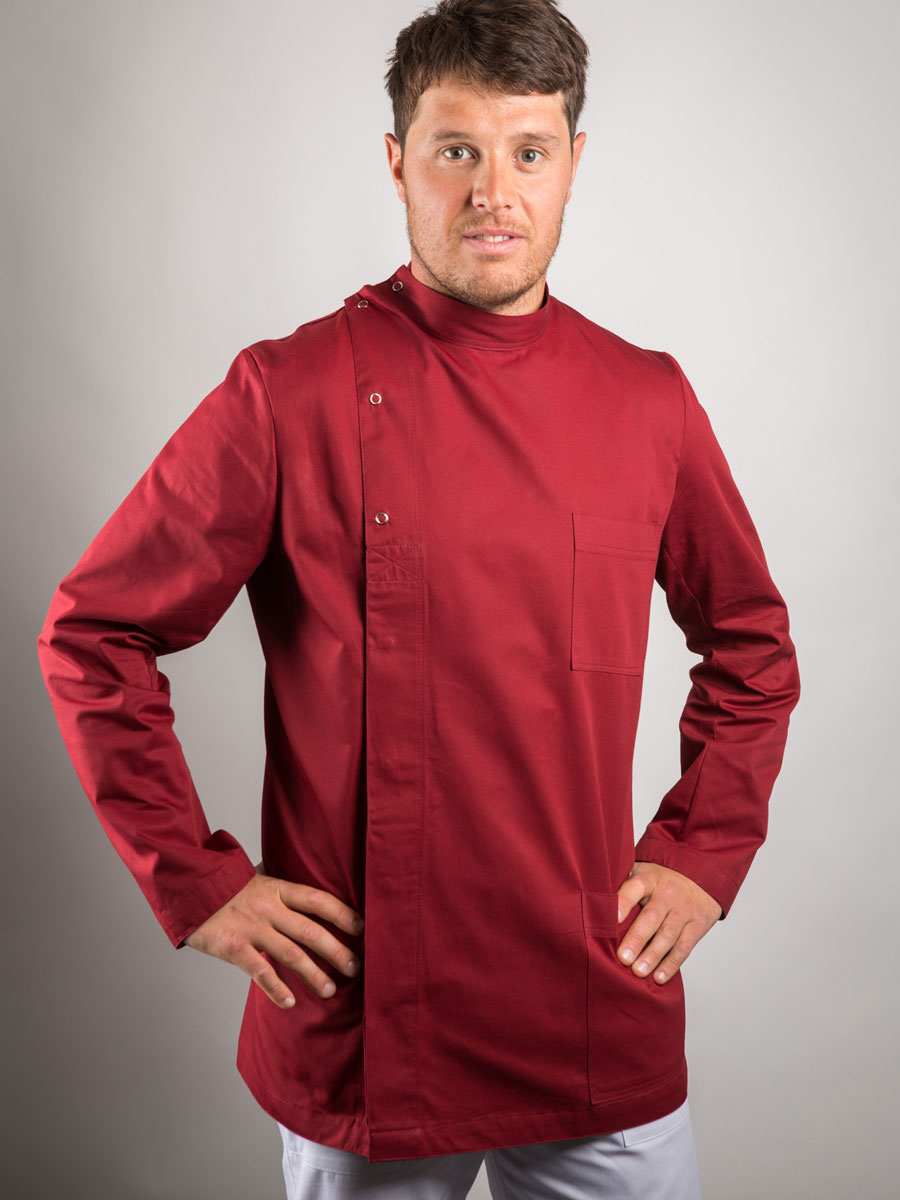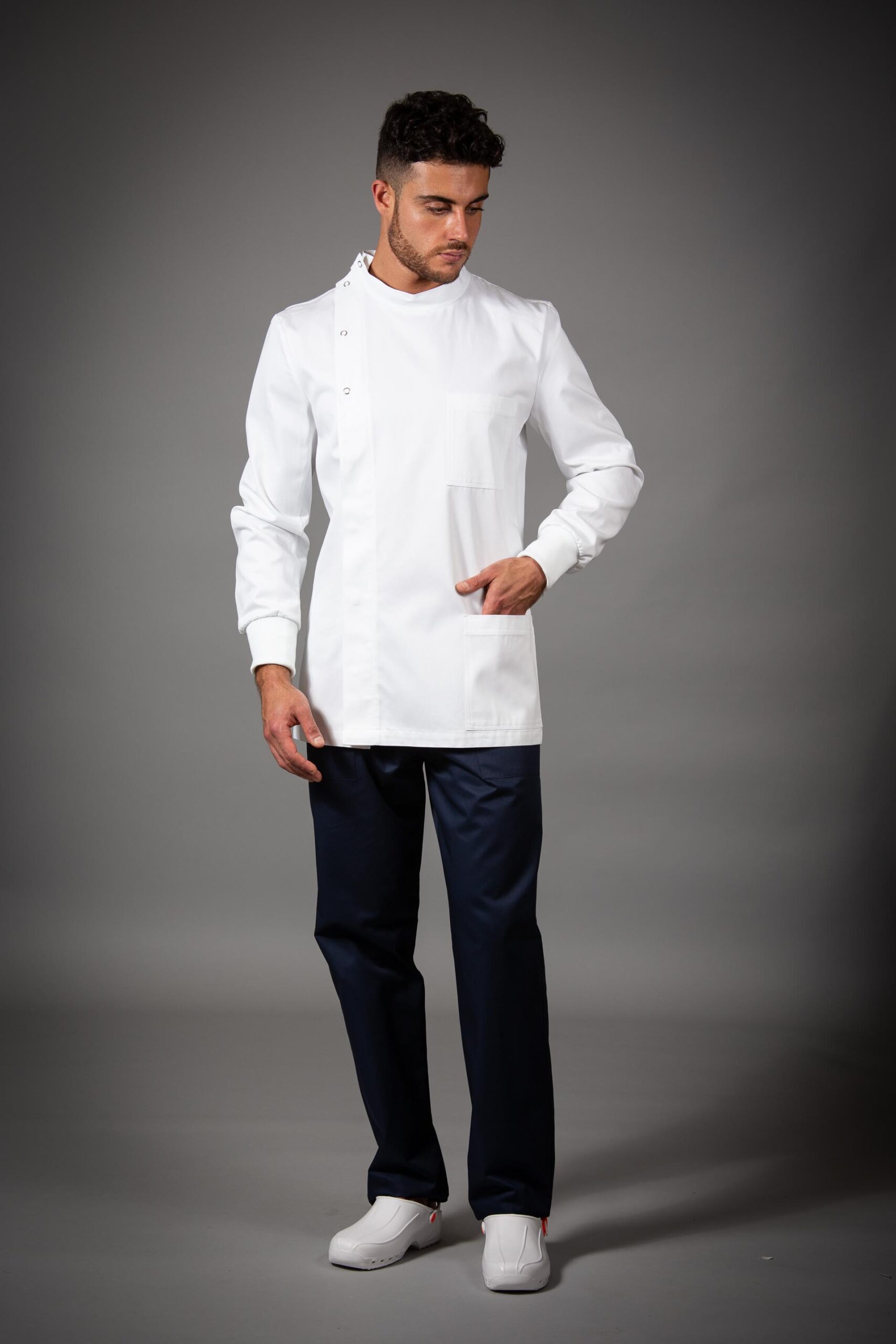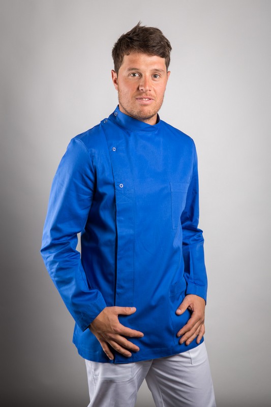 Una casacca tecnica da uomo, pratica allacciatura sul lato destro e taschino sul cuore. Vestibilità e giro manica piuttosto aderente. Manica lunga con polso libero e collo alla coreana.