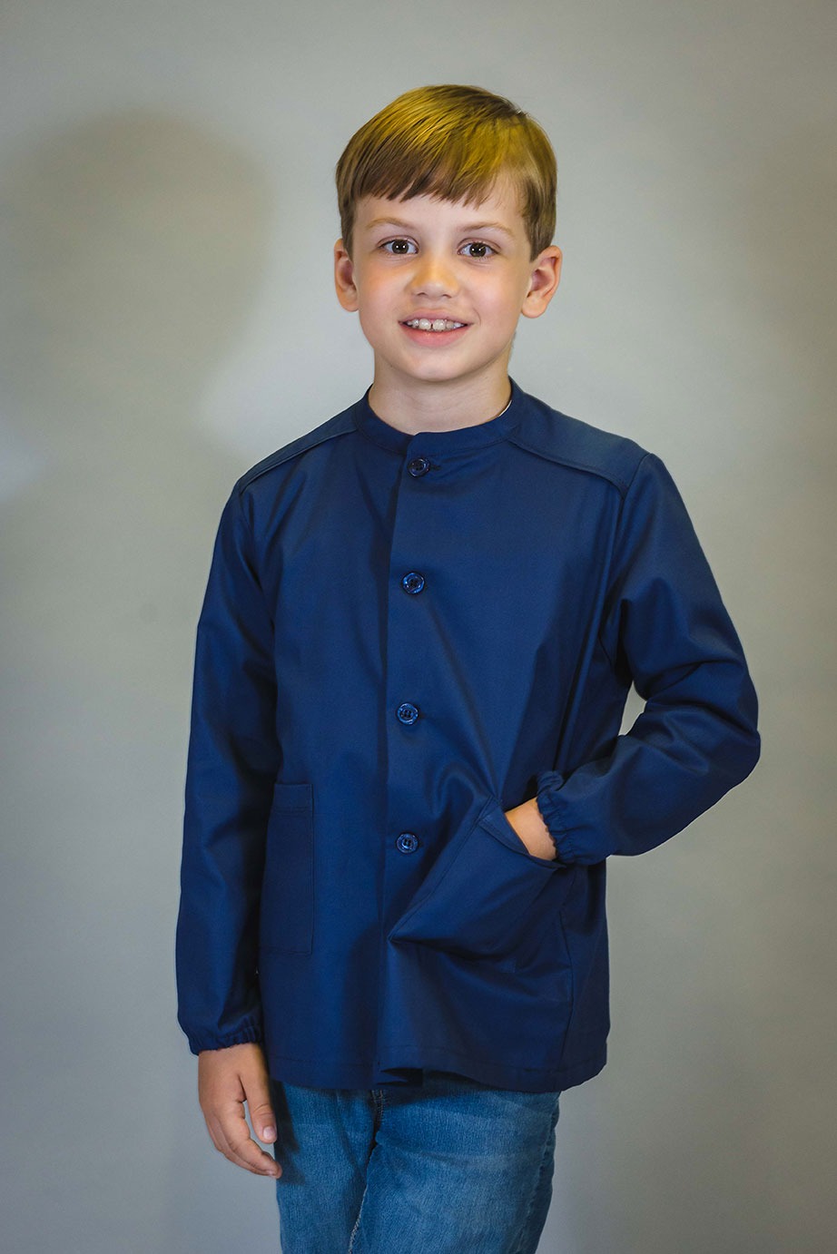 Scegli la casacca scuola in stile sahariana con collo coreano, perfetta come grembiulino per iniziare la scuola a settembre. Arricciata dietro e con elastico regolabile in vita, due ampie tasche e pratico elastico ai polsi. 3 i colori disponibili: blu, nero e bianco. Il tessuto Zephir in puro cotone è leggero e confortevole, ad alta traspirabilità.