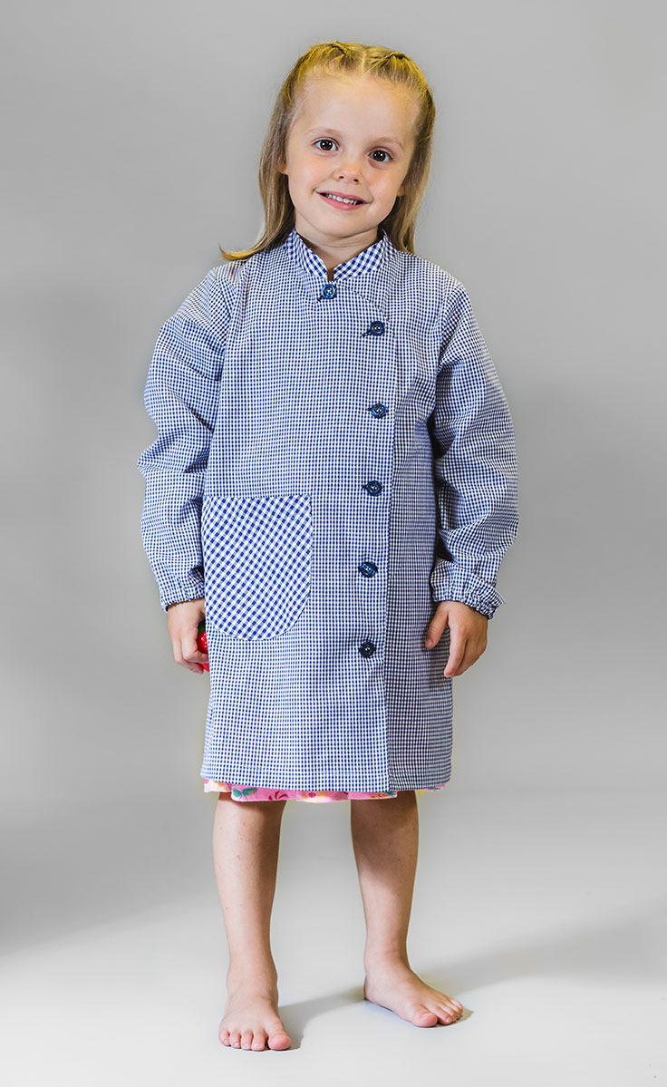 Grembiule per bambina per la scuola materna in puro cotone 100% interamente prodotto in Italia. Abbiamo curato i dettagli: un nuovo modello dallo stile vagamente orientale in morbido e traspirante cotone Zephir. Vestibilità asciutta.