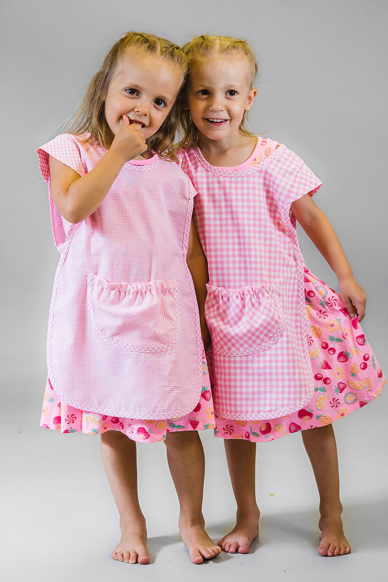 Scegli il Poncho salva macchia in tessuto di puro cotone per bambina, da utilizzare anche con grembiule scuola, altamente pratico senza allacciature e con morbidi elastici sui fianchi. Una capiente Maxi tasca arricciata é applicata davanti. Profili, sfiziose maniche e maxi tasca con quadratini vichy a contrasto.